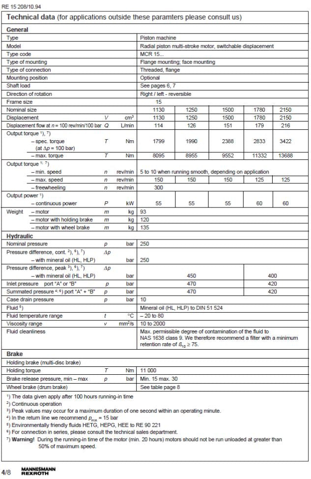 MCR15F2150F280Z31AOM2L 2150cc/rev Hydraulic motor MCR15